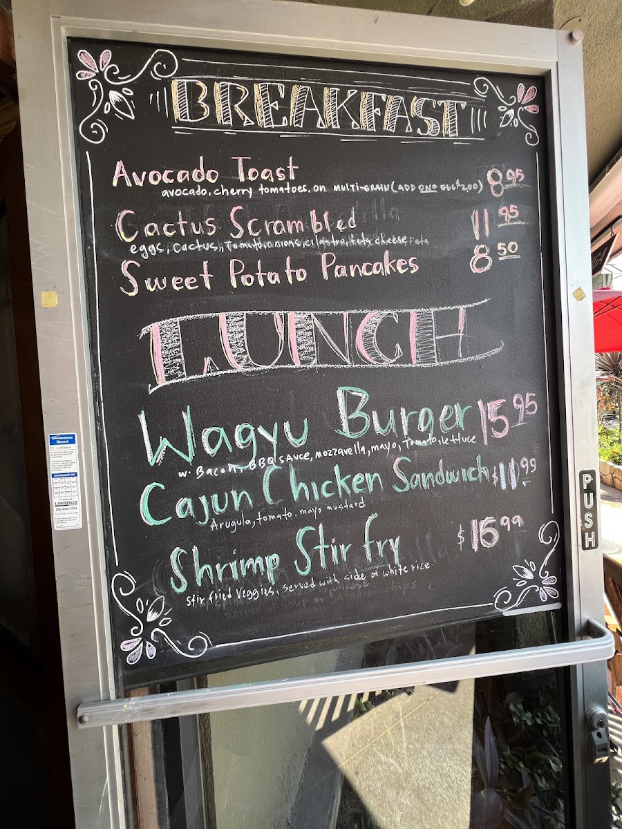Drinks range from strong, well-crafted coffee to fresh juices, making them ideal companions for casual conversations or moments of quiet reflection. The balanced combination of simple dishes and familiar flavors invites guests to settle in comfortably, whether seated indoors or outside soaking up the California sun.